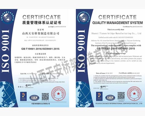山西天安橋架制造有限公司是一家生產(chǎn)電纜橋架、母線(xiàn)槽的大型廠(chǎng)家,主要生產(chǎn):槽式橋架、托盤(pán)式橋架、梯級(jí)式橋架、大跨距橋架、母線(xiàn)槽有空氣型、密集型、耐火型、鋁合金等以及通風(fēng)管、可根據(jù)客戶(hù)要求定制各種型號(hào)各種規(guī)格,表面處理有熱鍍鋅、防火噴塑、防火漆、熱鍍鋅等,產(chǎn)品廣泛應(yīng)用于石油、化工、治金、電力、紡織、通訊、高層建筑等各個(gè)領(lǐng)域。產(chǎn)品具有外形美觀(guān),耐腐蝕性強(qiáng),安裝靈活方便,品種齊全等特點(diǎn)。
